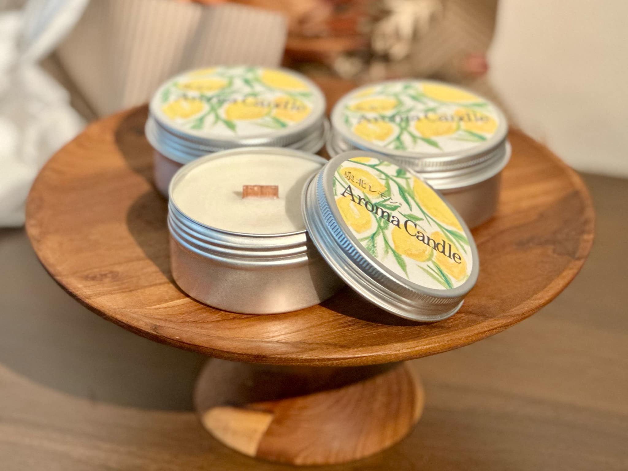 火を灯すと、パチパチとなる心地よい音と、100%自然植物由来だからこその泉北レモン®︎の優しい甘酸っぱい香りを、お楽しみいただけます。
